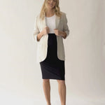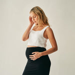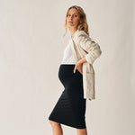 The elegant transition from change table to office desk to evening events, our considered pencil skirt has the potential to elongate silhouettes by both proudly showing off your bump and reclaiming your waist.