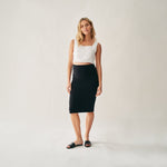 When wearing The Pencil Skirt under the belly it will create the look of a long / midi skirt. Mix and match with our essential tops to create another dress silhouette. (The Long Sleeve + The Pencil Skirt = Long Sleeve Dress)