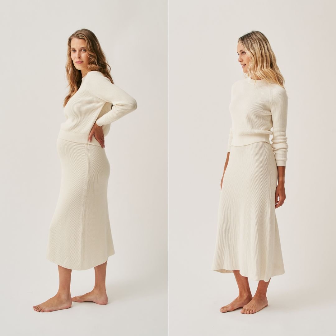 Yes, our collection can be worn before, during and after pregnancy. Our thoughtfully designed knitwear is made from natural fibres that are breathable ensuring your changing body will always be at its best in every season.