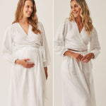 The romantic bracelet length sleeves and soft elastic front waistband on a gathered skirt combine both feature and function to make it maternity friendly.