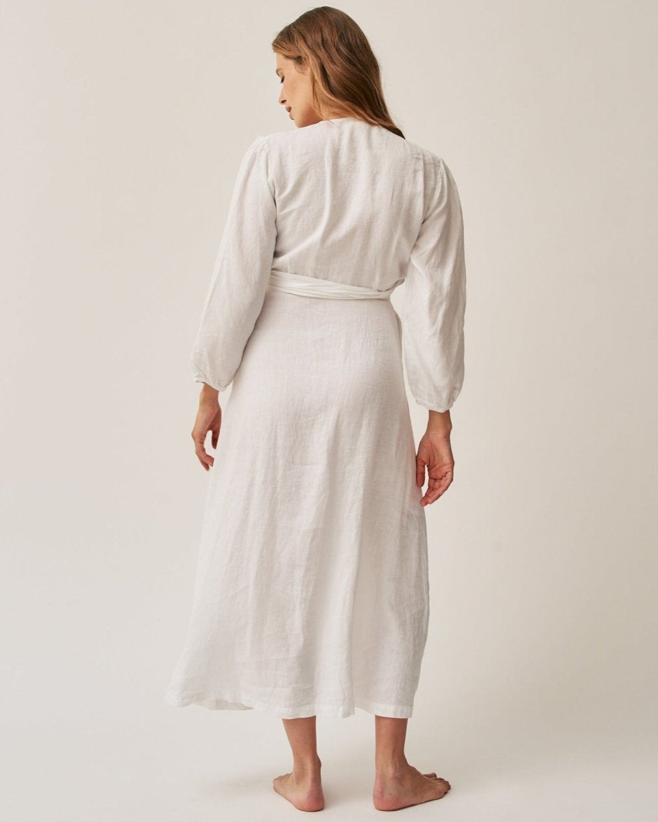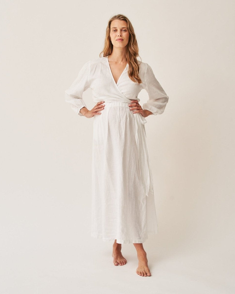 Our Linen Wrap Dress delivers a timeless feminine answer to warm weather dressing, and simplicity for a nursing Mother through its beautiful wrap front feature.