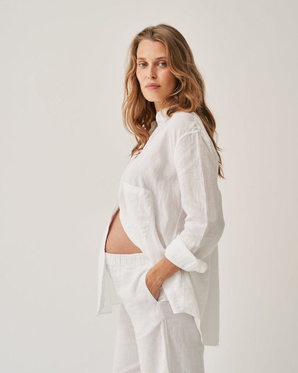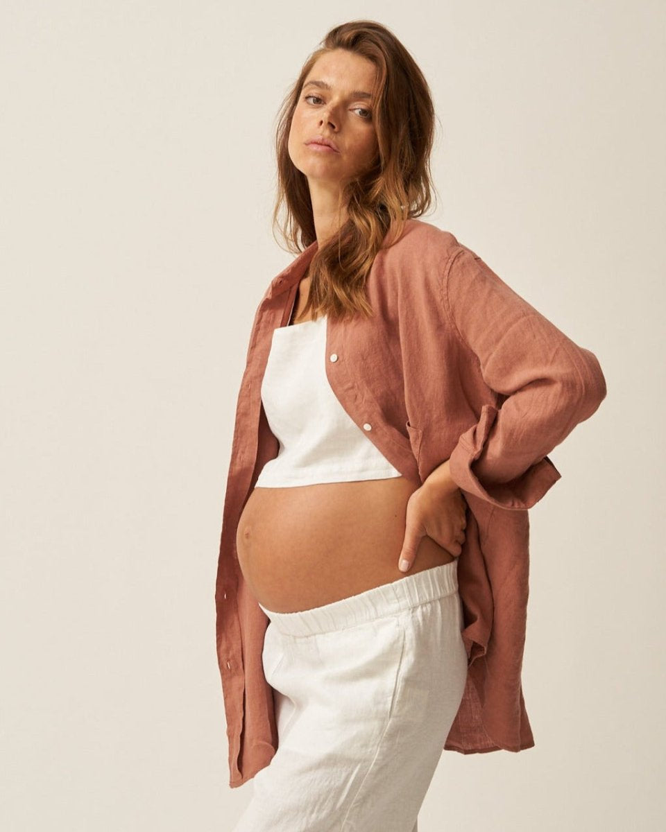The Oversized Linen Shirt as the name suggests is a relaxed fit with room for a growing bump, or post-partum simply for an easy oversized style.