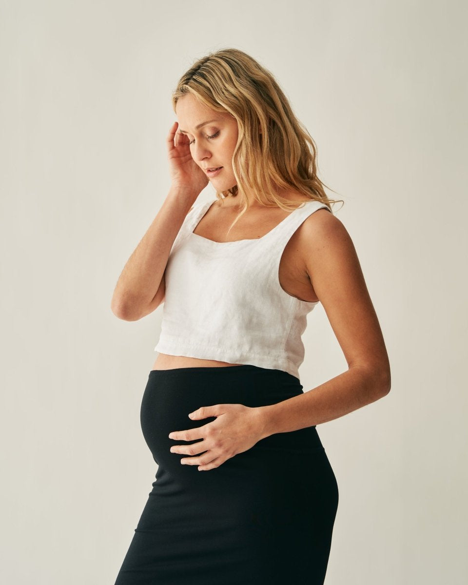 When wearing The Pencil Skirt under the belly it will create the look of a long / midi skirt. Mix and match with our essential tops to create another dress silhouette. (The Long Sleeve + The Pencil Skirt = Long Sleeve Dress)